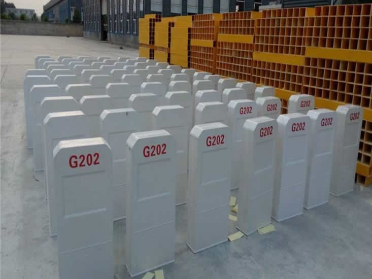 一、玻璃鋼里程碑玻璃鋼百米樁,每1000米設一個,玻璃鋼里程碑的顏色,國道為白底紅字;省道為白底藍字;縣道為白底黑字。設置在道路順路線方向的右側。比重輕、抗腐蝕、耐老化、密封性能好,安全美觀,具有全天候防護功能,能夠滿足室外工程項目中各種惡劣環境和場所的需要,具備優異的絕緣材料,高性能的絕緣電阻防止漏電,在高頻下能保持良好的介電性能,不反射,不阻斷微波的傳播,不生銹 長期使用安全。